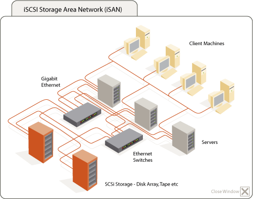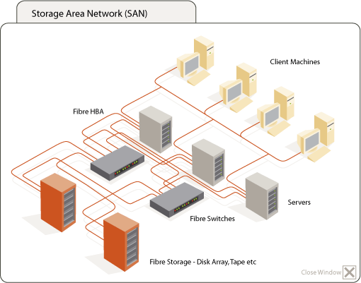 En un CPD es muy habitual diseñar e implementar lo que se conoce como Red de Almacenamiento, ya sea de tipo NAS, SAN o iSAN. Normalmente los discos duran no van conectados directamente a los equipos (DAS), sino que forman parte de la red y son capaces de conectarse a ésta de una forma autónoma.